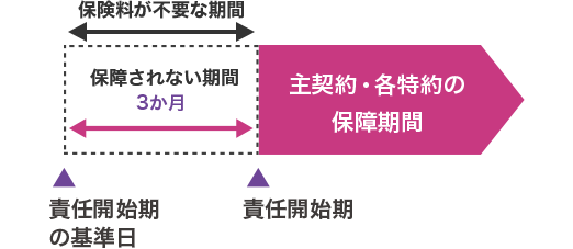 - この保険は、責任開始期の基準日からその日を含めて3か月を経過した日の翌日を責任開始期とし、その日から保障を開始します。