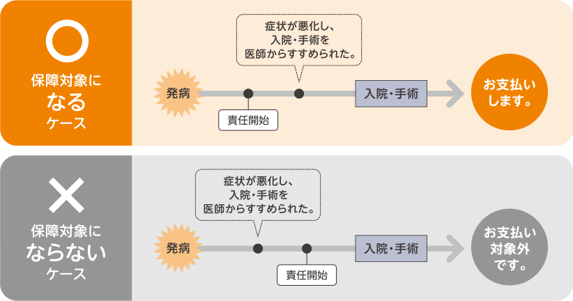 責任開始期前に医師によりすすめられていた入院・手術などについては保障の対象にはなりません。
